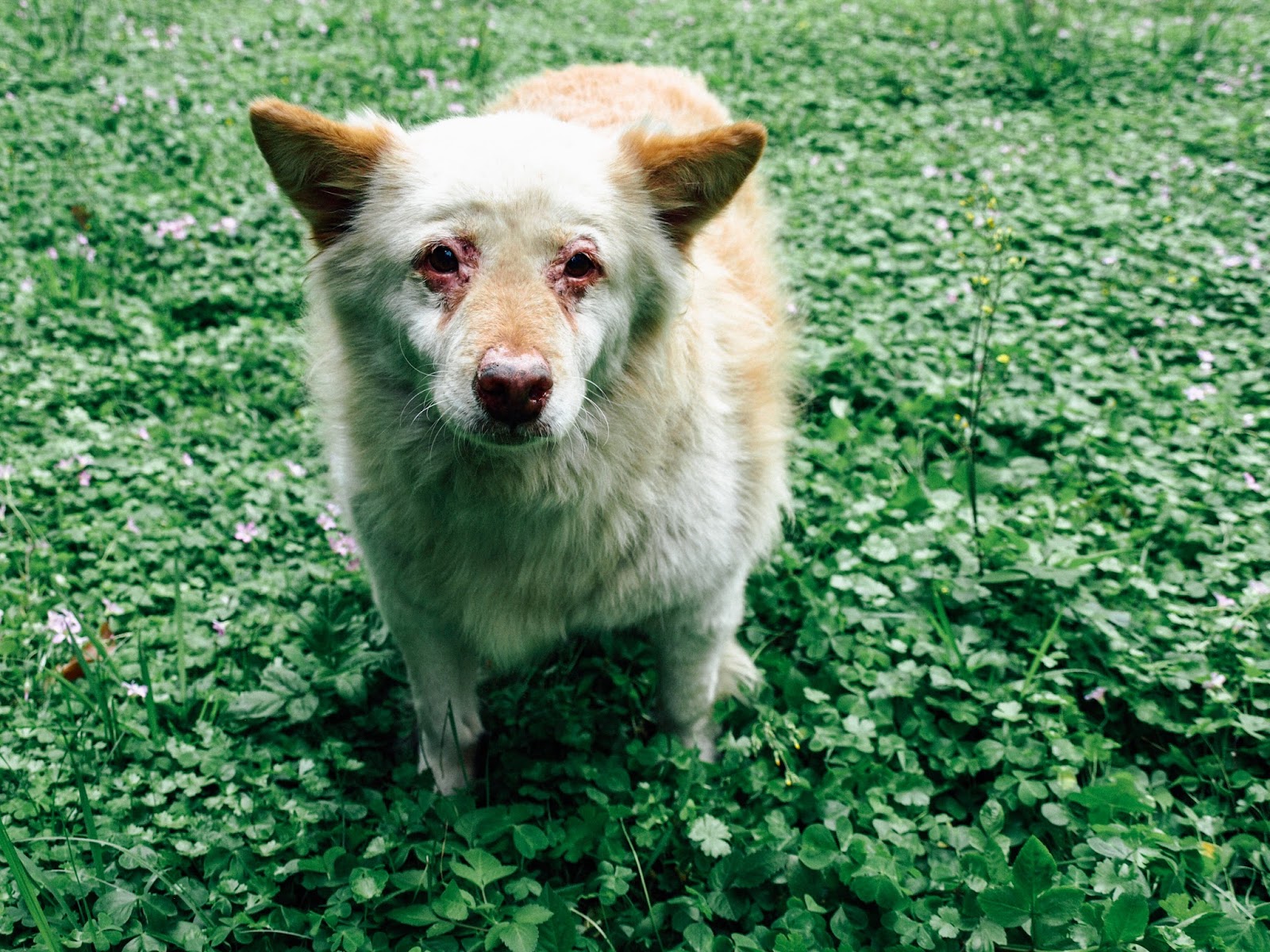 成明信片。這位輔大明星校犬「蝦米」,因為患有皮膚病,所以
