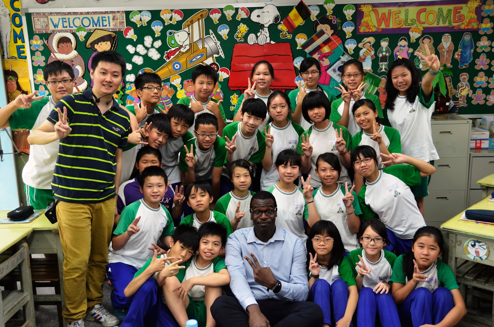 語教師林加振(二排左一)就「Flat Stanley」計畫交流。