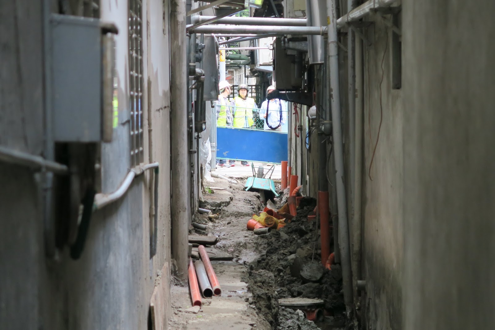 泰豐里里長林玉娟表示,泰豐街三十巷二號不但是違章建築,也不配合將牆打掉內縮七十五公分,導致現在工程停擺。部分民眾早在三個月前,已自行拆除完畢,因為這戶而遲遲無法動工。新北市水利局汙水下水道工程科(職銜)劉勝今表示,他們會盡快處理。