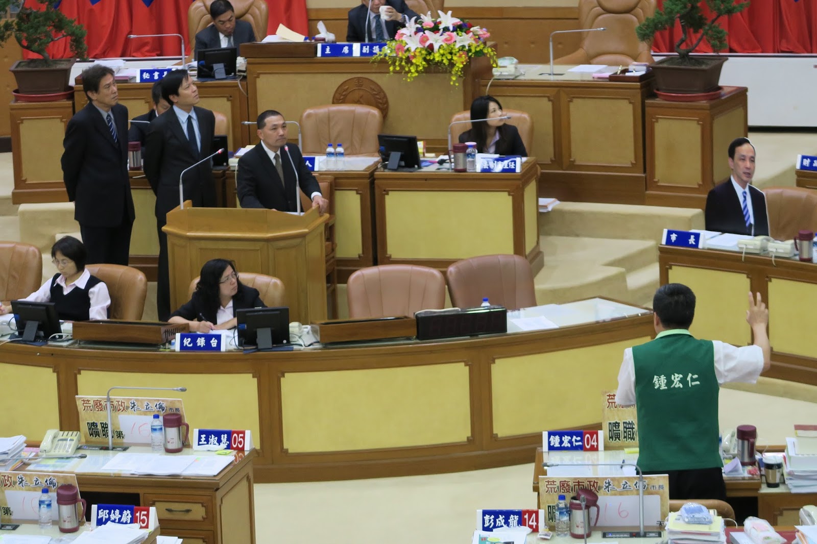 ▲新北市議員鍾宏仁(右一)質詢副市長侯友宜(左三)。攝影/陳韻如