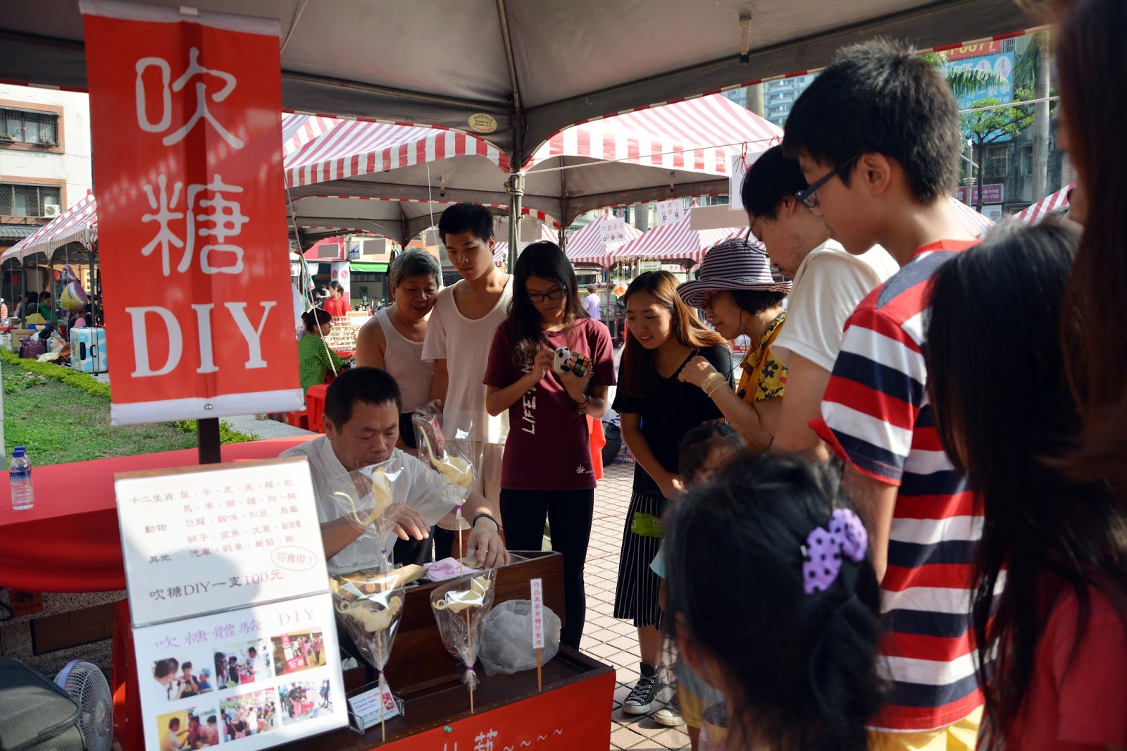▲「廿戀新莊 藝齊風發」館慶園遊會中的吹糖DIY攤位。攝影/張絲雨