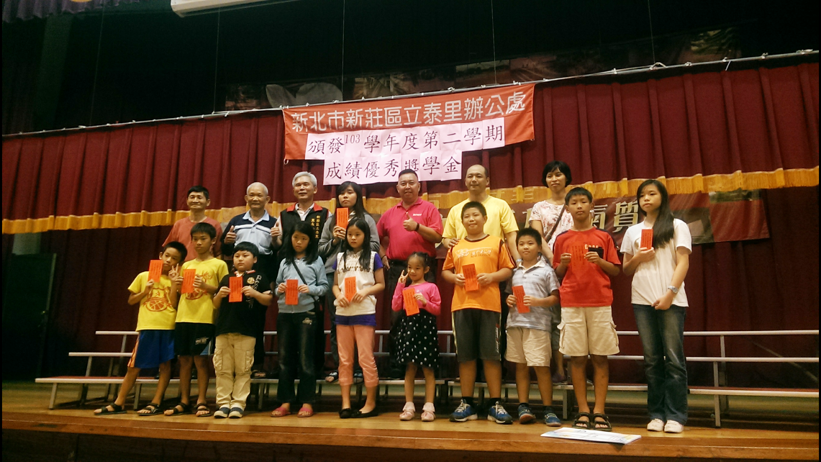【記者陳宥畬報導】立泰里一O三學年度第二學期成績優秀獎學金頒獎典禮在十一月七日晚間於新泰國中大禮堂舉行。獎金經費來自里上資源回收站所得,落實取之社會、回饋社會。