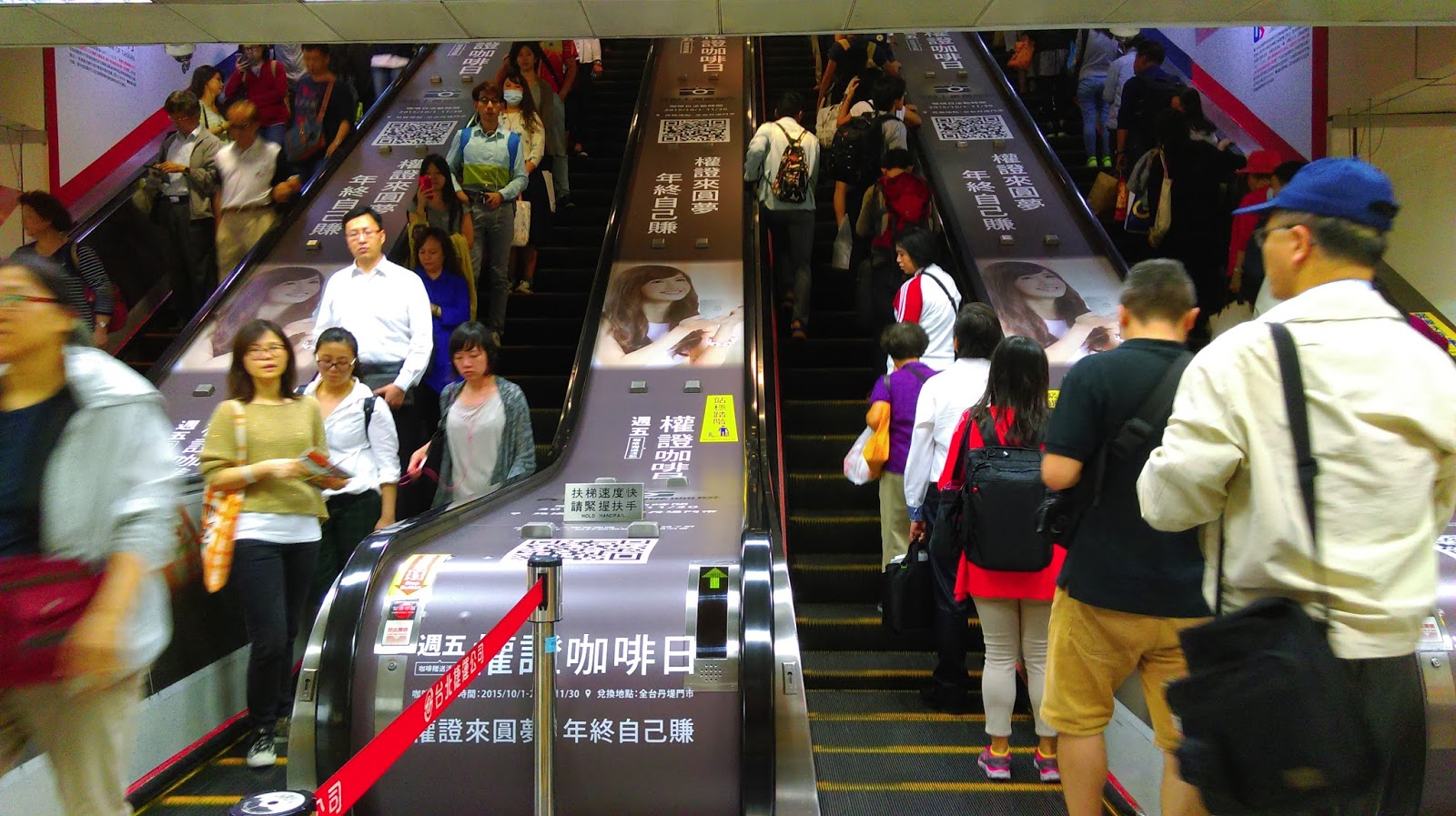▲北捷忠孝復興站電扶梯左右分道情形。 攝影/溫婉廷