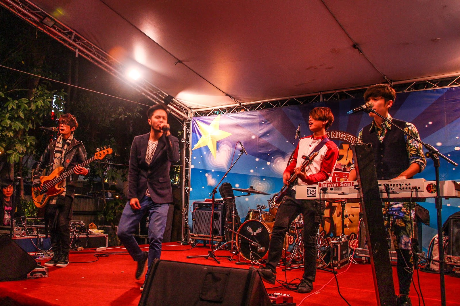 ▲台灣爽樂團在輔大花園夜市開唱。 攝影/林蓉
