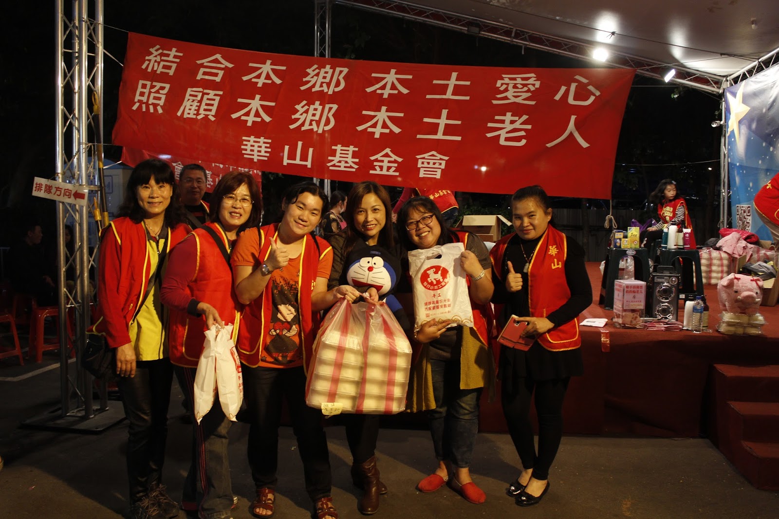 【記者林奕廷報導】華山基金會義賣活動十一月廿八日晚上在輔大花園夜市舉行,販賣商品有純手工饅頭、沐浴乳、護手霜及防蚊液等日常生活用品。華山基金會新莊區負責人陳秋紅說,每年的十一月基金會都會舉辦愛心義賣活動,因為農曆新年即將到來,目的是為了幫獨居老人籌募年菜基金,讓他們過好年。
