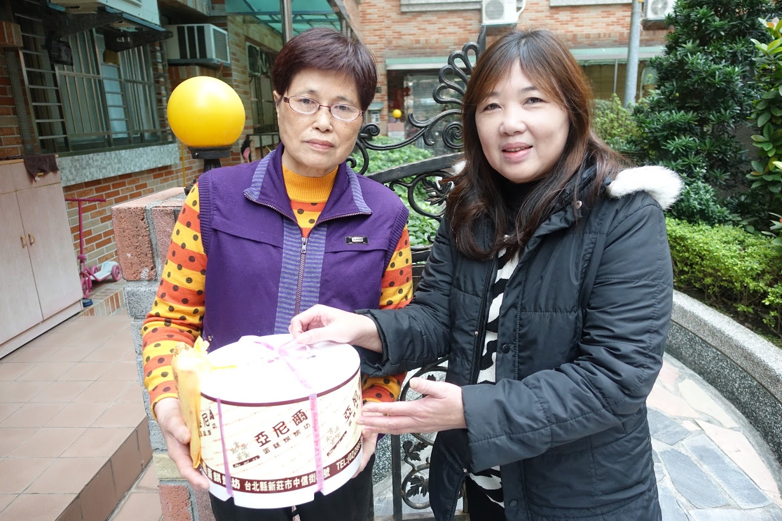 ▲立廷里高齡七十歲的壽星陳李秋涼(左)與亞尼爾蛋糕店老闆娘(右)。