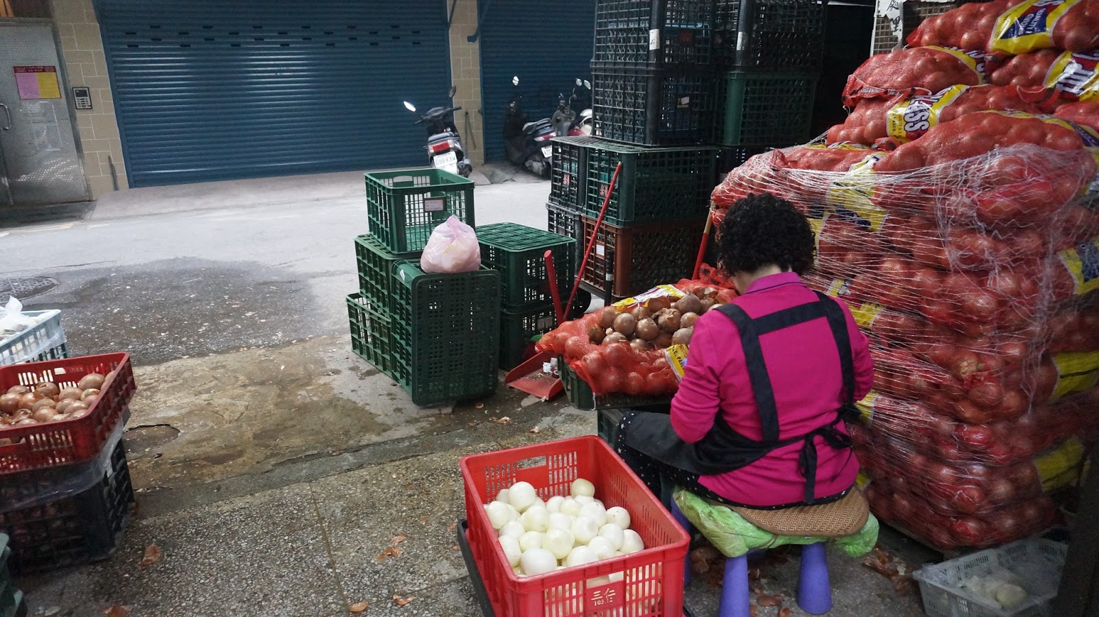 ▲辛勤的剝著一顆顆洋蔥的老奶奶。 攝影/張惠華