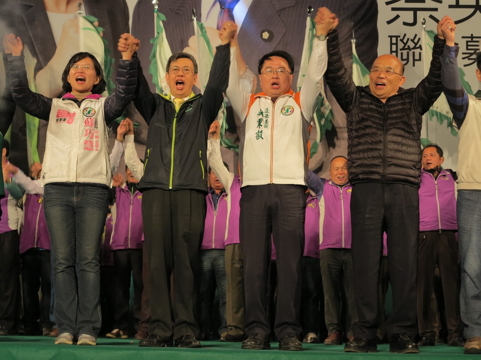 ▲民進黨立委候選人蘇巧慧(左一)、副總統候選人陳建仁(左二)、立