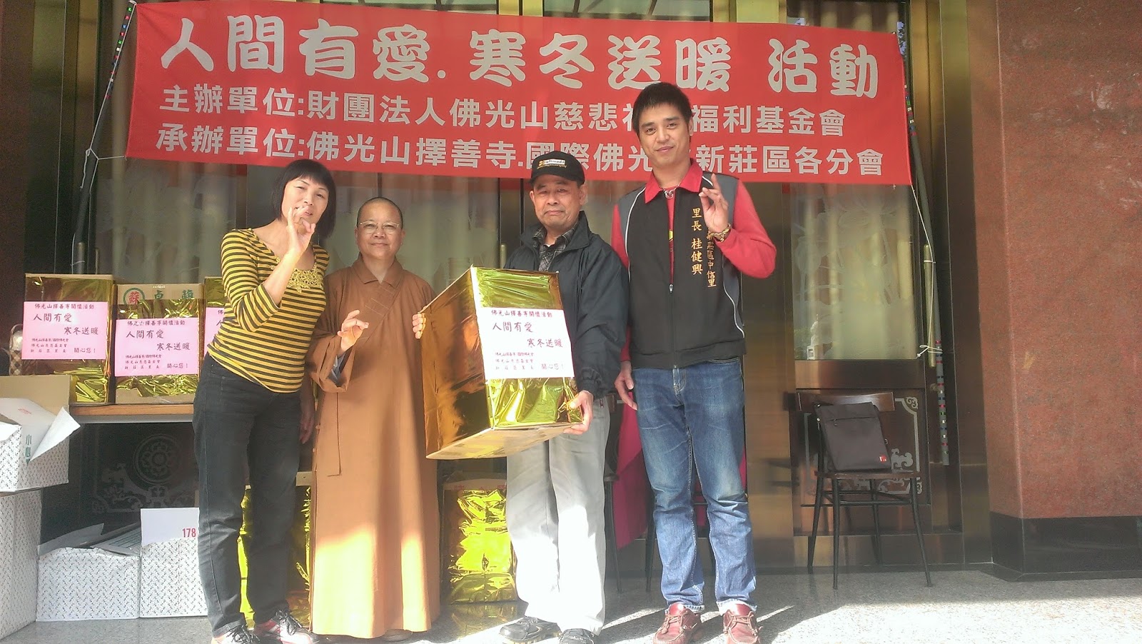 佛光山擇善寺永堂師父表示,這個活動已持續多年,當初是以「寒冬送暖」的構想為切入點,才有這一整個活動的策劃,希望盡一份心力,利用身邊所有的資源幫助附近比較弱勢的低收入戶族群。