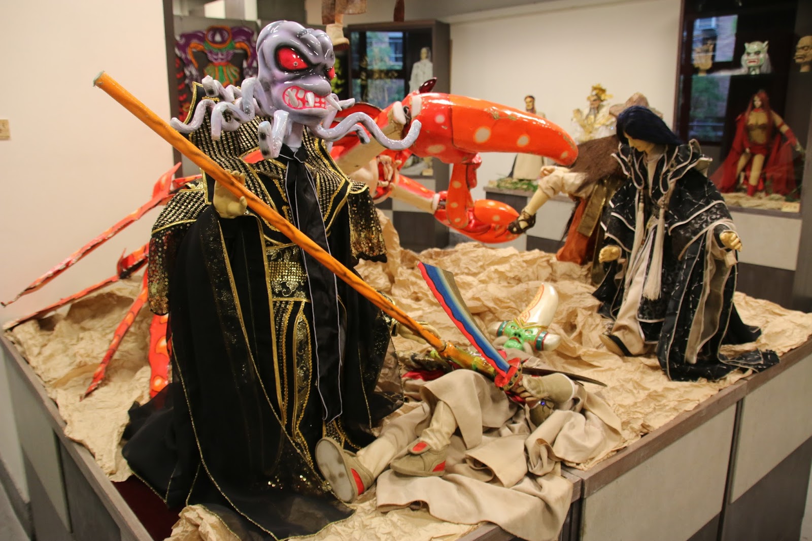 新莊文化藝術中心三樓布袋戲文物館正展出【新世界掌中劇團~《偶藝風雲新世界戲偶展》】到二月廿一日為止。