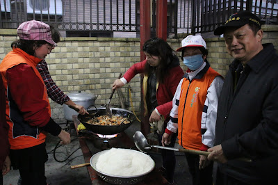 ▲龍鳳里里長林清源(右一)與義工隊一起為里民準備共餐佳餚。攝影/林苡婕