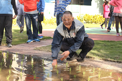 蔣金樹指導校園耕作活動已有廿多年時間,在嘉義老家就有耕作經驗,也因此擁有豐富的耕種知識,自他的兒子就讀新泰國小時就開始協助學校耕作活動教學,半年一期的耕作,從鬆土、插秧、日常照顧到收割都是他教導學生耕作的內容。