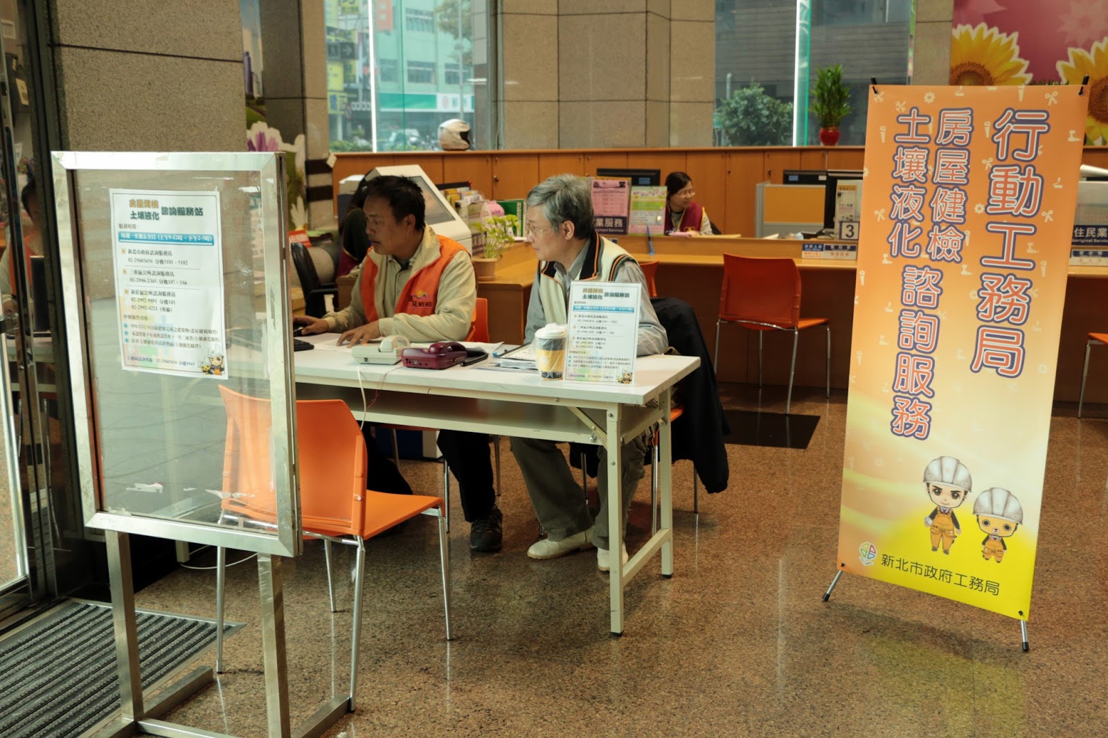 政府日前公佈新莊區屬於土壤液化中、高危險區,新北市工務局從三月十一日起在新莊區公所設立土壤液化及房屋檢測諮詢服務站,共為期將持續兩週。服務站每天安排兩位技師提供為民眾處理土壤液化問題相關諮詢服務的服務。