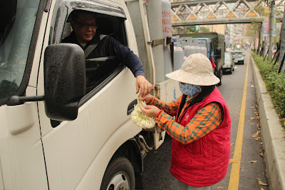 阿嬤賣玉蘭花 保順宮慈善功德會捐贈營養食品