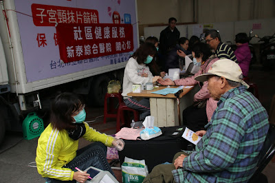 【記者陳泓儒報導】全安里三月廿七日在全安活動中心舉辦里民免費身體健康檢查。新泰綜合醫院的社區醫學專員賴佳宜表示,這次健檢的檢測項目包含血糖、血壓、骨質密度、糞便檢查和子宮頸抹片檢測。其中子宮頸抹片是今年新增的檢測項目;除了糞便檢測是今天拿回家,明天再交給醫護人員拿去醫院化驗,其他都可以馬上知道檢測結果。