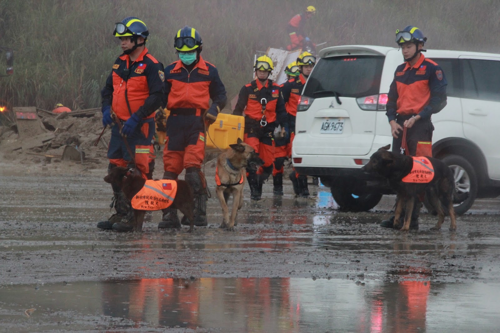 ▲北部聯合防災演習,模擬強震後,出動警犬隊搜救受困人員。