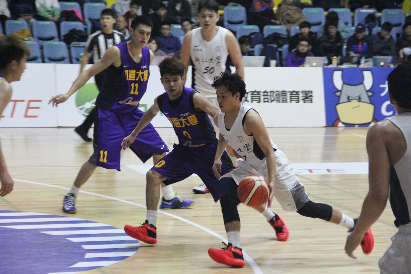 此階段賽事在輔大中美堂以及泰山體育館舉行,賽程至三月廿七日結束,取前八名隊伍晉級決賽。圖為輔大後衛賴廷恩嘗試切入。