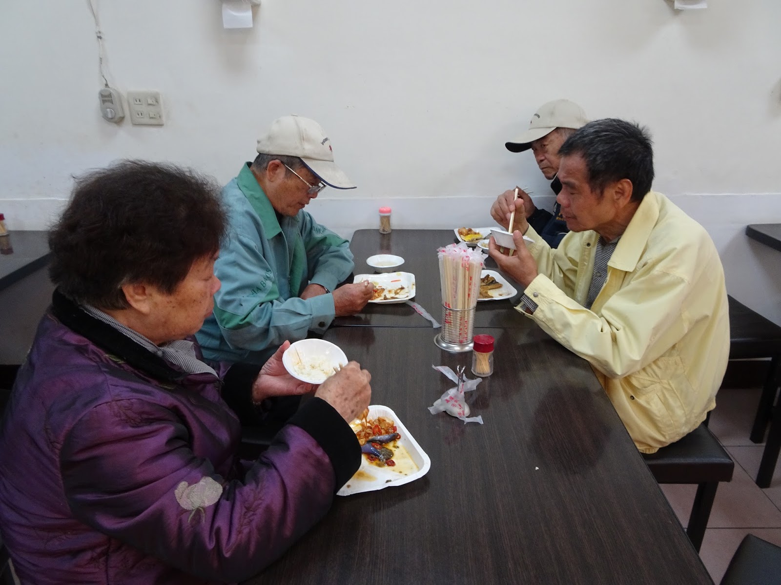 三月廿六日第二次共餐活動有四人參加,年齡分別是八十七歲、八十四歲、七十八歲及七十四歲,其中兩位是第一次參與。宋姓長輩說:「來這邊吃免錢的,對老闆感到不好意思,謝謝店家。」