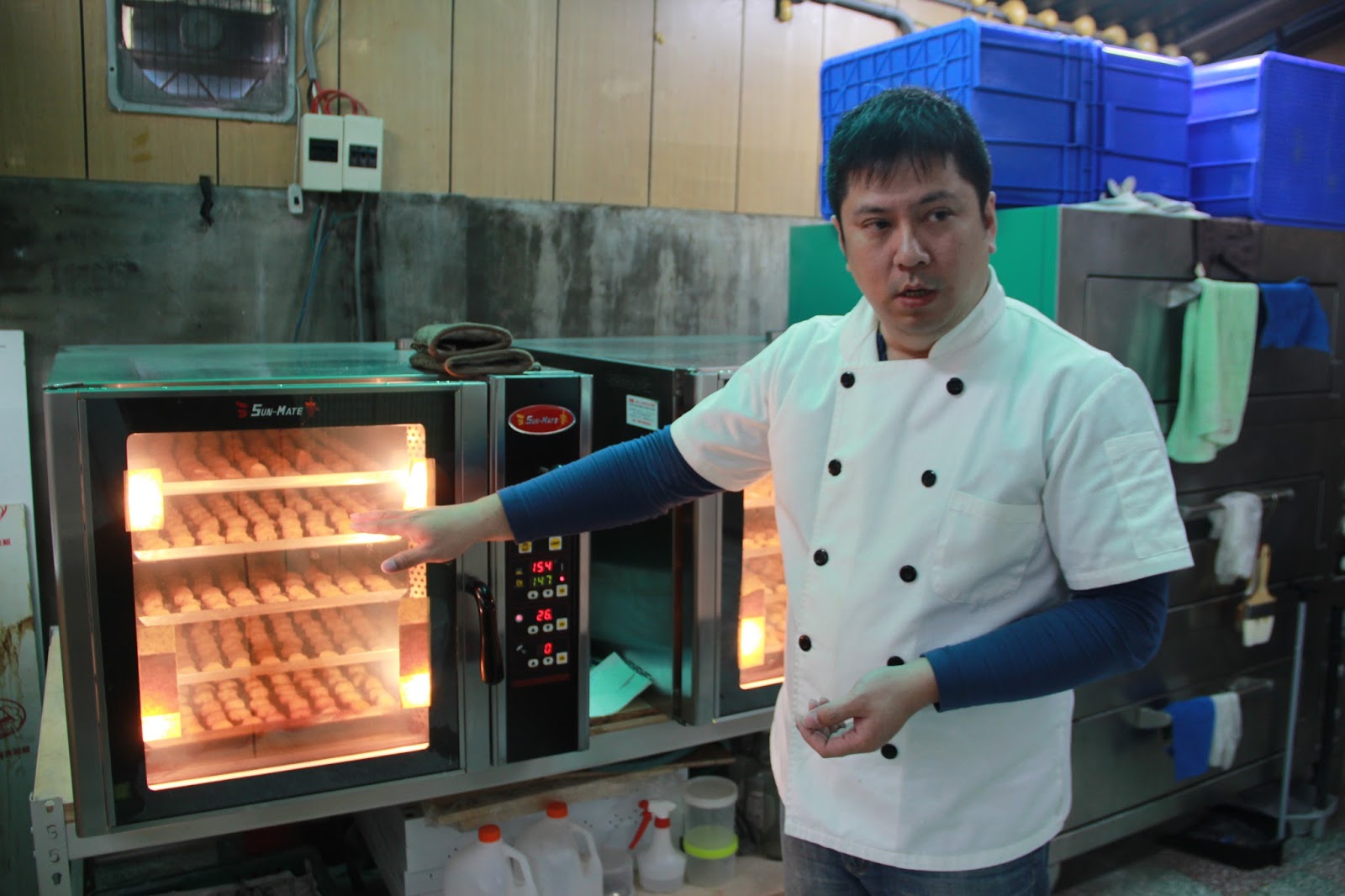 | ▲萌焙司老闆陳瀚明說明千層酥的烘焙方式。