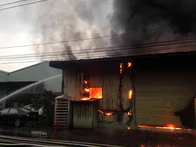 據指,起火戶為「台灣毆必斯股份有限公司」的廠房,該公司主要業務包括五金批發、電器批發、家具與廚具零售等。警消說,火勢燒光了三百平方公尺的廠房,裡面幾乎都是家具;相鄰的「動源企業社」也難逃祝融,引火面積約30平方公尺。起火原因待警方調查。