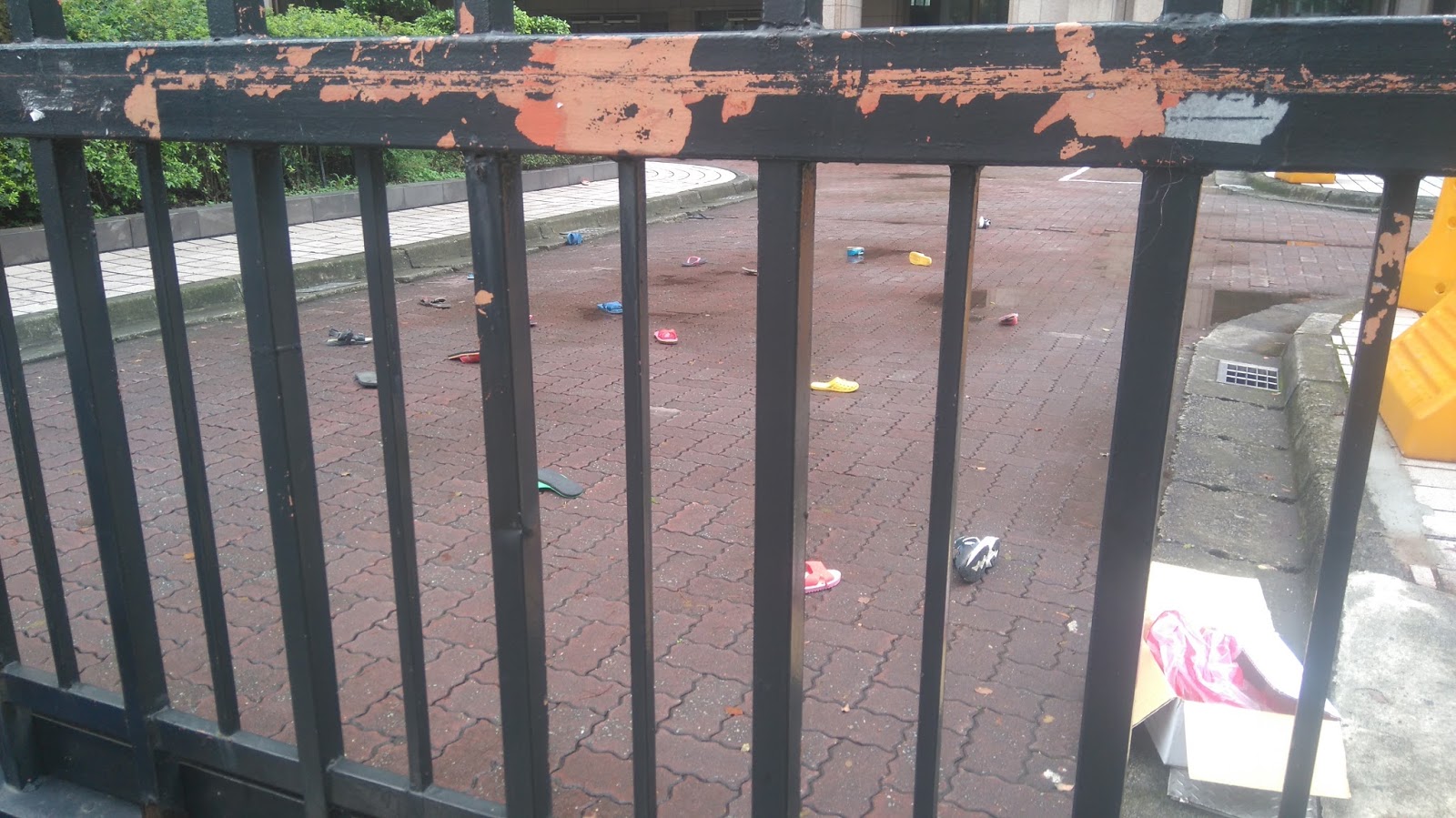 ▲塭仔圳居民向內政部丟拖鞋表達抗議,並希望內政部勿成為新北市政府炒房幫兇。