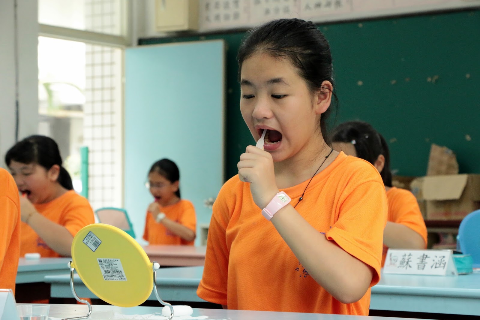 張嘉津表示,中港國小有完整的口腔保健教學流程,一年級入班教學貝氏刷牙法;二到三年級著重技巧精進;四年級上學期時,班導師會挑選三到八位表現優良學生,組成潔牙種子隊加以培訓;四年級下學期時,護理師入班教牙線,並由潔牙小天使團擔任小幫手,輔導教學。