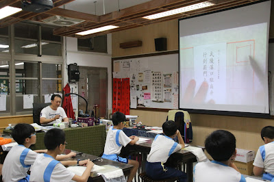 目前三到六年級,上或下學期,每周有一節書法課,由教師吳勝揚、李秀美教導寫硬筆字及毛筆字。陳忠建表示,針對教學對象的不同,教法也會不一樣。一般學生能靜下來寫字就不錯了,不是把他們當成書法家來訓練,書法主教育從「把字寫好」心態轉變成「想把字寫好」。