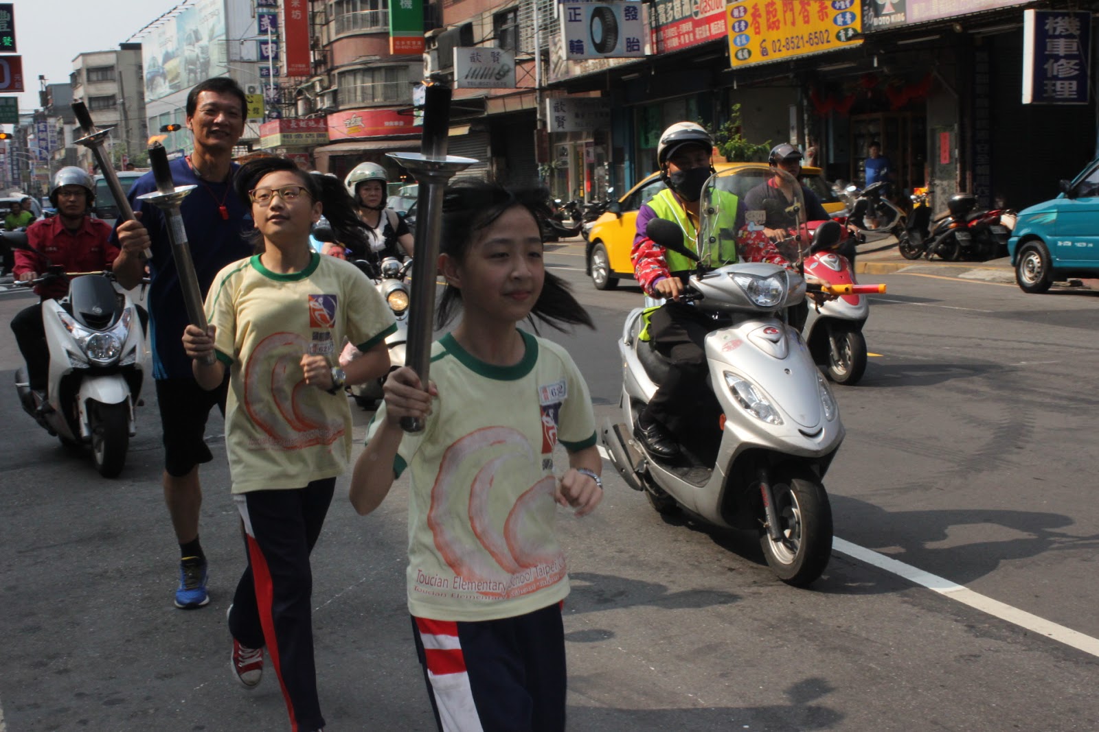 聖火隊是由六年級的卅八位學生所組成,共十二支聖火,並分成十組傳接。為了讓繞境儀式更加盛大,學校特別安排舞龍隊打鼓,以及所有六年級小朋友在旁歡送,同時還有志工騎重機與家長會成員開車領頭,並沿途播音邀請居民一同參與運動會。