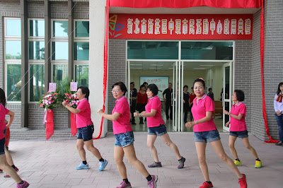 ▲立基里里長張中貞(左二)為啟用典禮準備的舞蹈表演,炒熱現場氣氛。