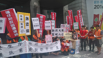 面對反迫遷連線的抗議,林炳勳說:「居民的訴求我們都聽到了。針對合法房屋部分,市府會依照內政部指示做處理,一切方案都在研擬中。至於工廠,已提供七十九萬坪的土地做安置,並協助工廠搬遷,都在進行中。」。