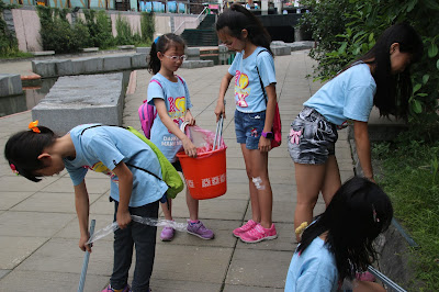 為宣導環保概念,活動前校方發放垃圾袋、水桶、夾子,一般垃圾投入垃圾袋;資源回收品則投入水桶,養成學生垃圾分類的好習慣。許以平說,透過服務學習,讓孩子懂得彎腰,講再多的理論都不如親自體驗。