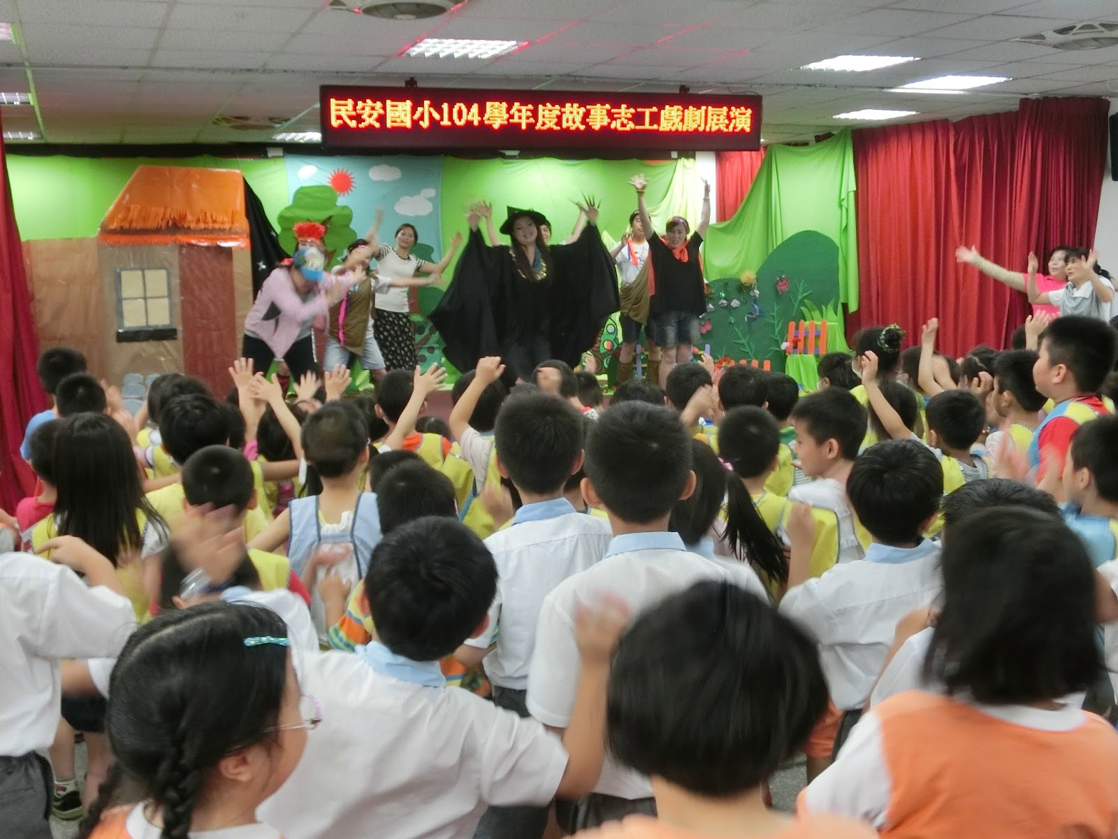 【記者鄭詠報導】民安國小五月廿七日舉辦故事志工媽媽戲劇展演,為了配合五月家庭月,表演劇情內容也以家庭為主題,用生動有趣的劇情引起小朋友們的省思。