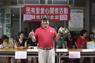 談到籌備過程,賴政源說,本來計畫是教導里民包肉粽,但因活動準備時間緊湊,現場的二千顆粽子主要仍是由里長購買加上里民贊助。因為天氣熱,活動中還另外準備仙草、米苔目等,讓前來領取粽子的里民消消暑。
