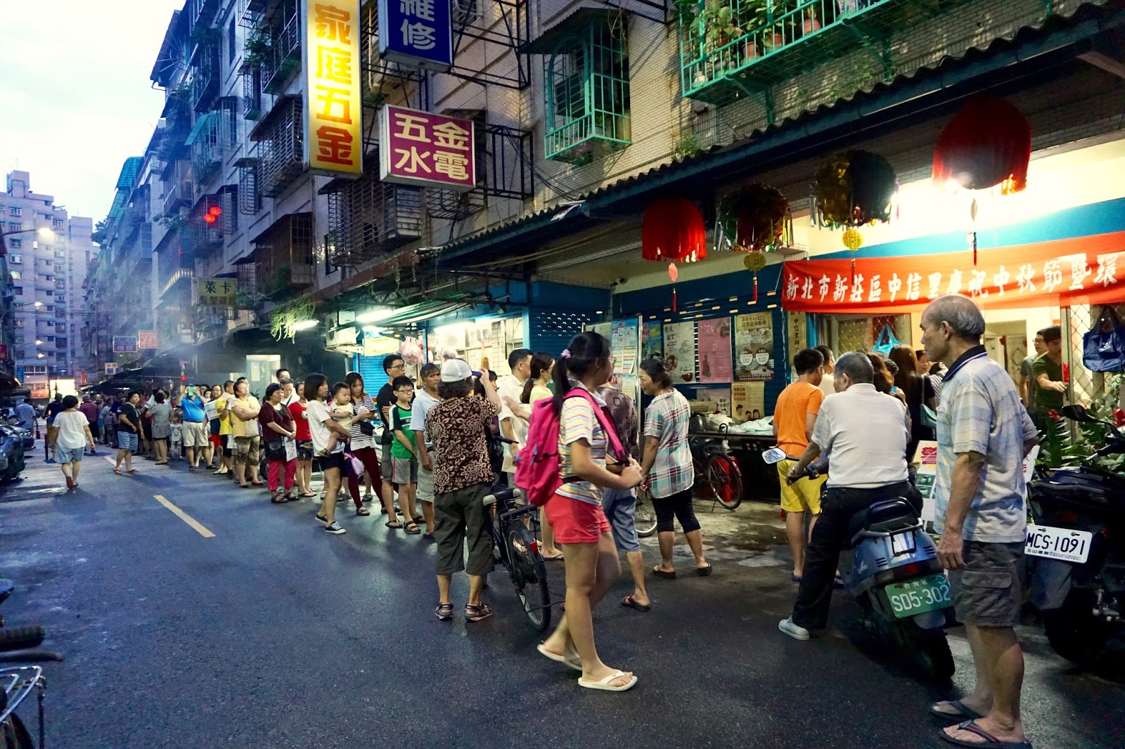 ▲中信里中秋節發放環保提袋,居民排隊領取