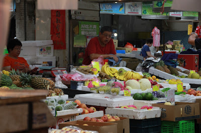 ▲九月十六日水果商販在新莊第一公有市場等待顧客來臨