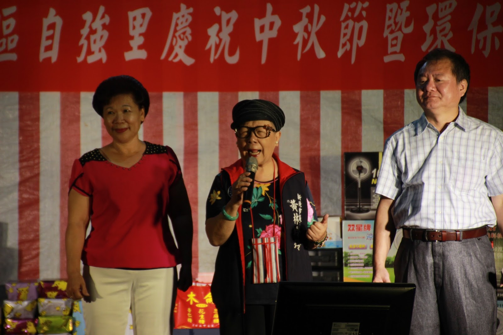 【記者王林曄報導】由於颱風莫蘭蒂的影響,新莊區自強里的「慶祝中秋節暨環保節能宣導」活動延期至九月二十一日。當晚有里民唱歌表演與大家同樂,還有獎品豐富的摸彩活動。新北市議員黃林玲玲也到場與民眾互動。