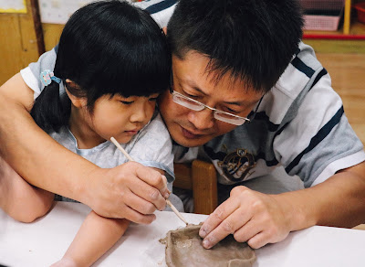 新泰國中廿四日舉辦家長日,附設幼兒園也配合舉辦了親子陶藝製作活動。活動於上午十時開始,孩子在家長的陪同下開始捏粘土。幼兒園院方表示,這個活動是為了增進親子之間的互動。