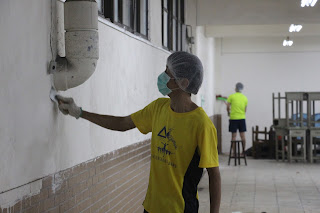 許多家長在學校環境清潔日時前往幫忙,清除地下室壁面的蜘蛛網、壁癌,也將窗戶清洗乾淨,完成初步的清潔動作。待地面和天花板都清理完畢,下一步將架設電風扇、美化天花板和粉刷牆壁,所有的工程預計在十二月完成。