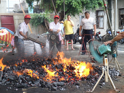 傳統木炭過火儀式在最後一天舉行,俗稱「弄過火」,在下午六時正式神轎過火,具有潔淨破穢,增加神明靈力的作用。保元宮採「過炭山」形式,以檀香粉取代常見的撒鹽米,由信眾所組成的法師團執行,神轎前後一人赤腳走過五百五十度的炭火上。過火儀式的黑炭需準備五小時,以燃燒中的金紙融入黑炭中,利用大型電風扇從旁助燃,不停敲打黑炭至灰色燃燒狀態。