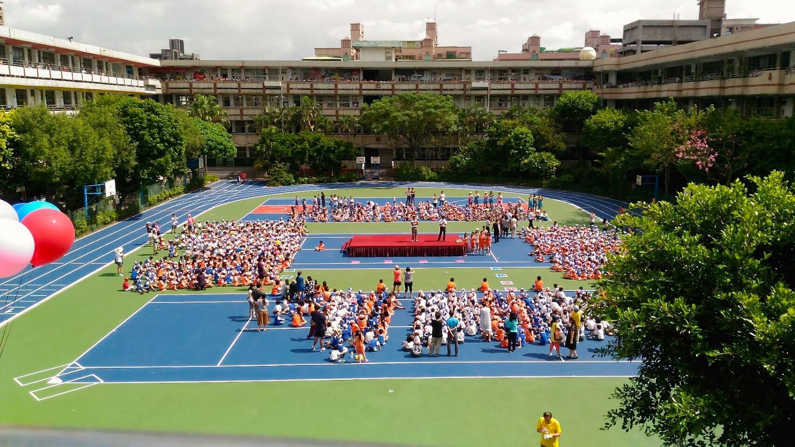 操場啟用空拍由「輕舟小蔡」蔡建民拍攝,他有豐富的空拍經驗,曾幫多所學校進行校園空拍,從空拍畫面中能看到學生聚集在操場及走廊上,共同迎接新操場的落成,搭配氣球升上空,畫面色彩繽紛。