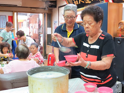 【記者張展嫣報導】十月八日中午還不到十二時,中泰里里長辦公室就滿是食物香氣,里長郭樹琳結合中港一街的光頭自助餐,準備兩大鍋皮蛋瘦肉粥、大骨熬成的鹹稀飯搭配土豆、麵筋、鮪魚等罐頭和水果,邀請中泰里內的獨居長者和弱勢家庭人一起到辦公室吃粥暖肚,給對方真實又溫暖的陪伴。