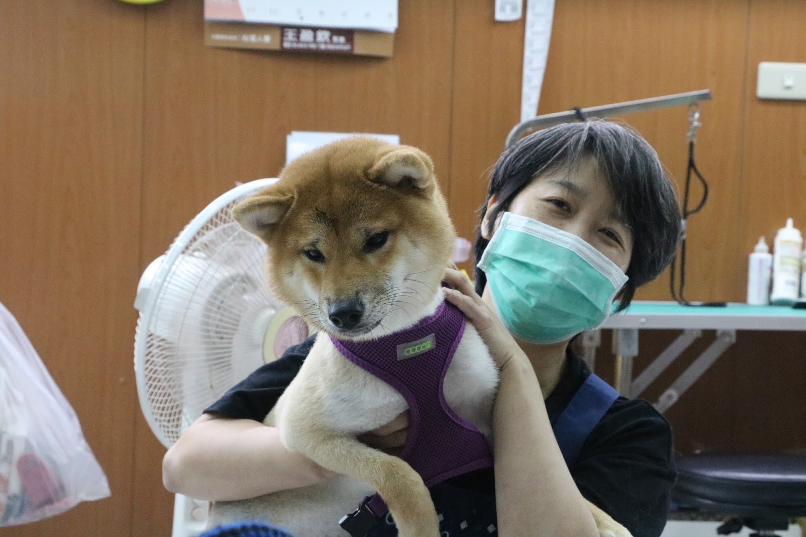 ▲莎多米寵物生活館美容師與店內柴犬。