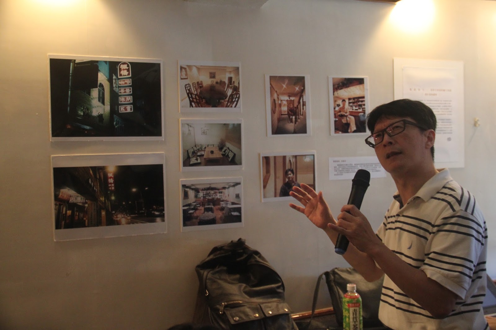 ▲楓橋咖啡老闆黃國漳講述照片背後的故事。