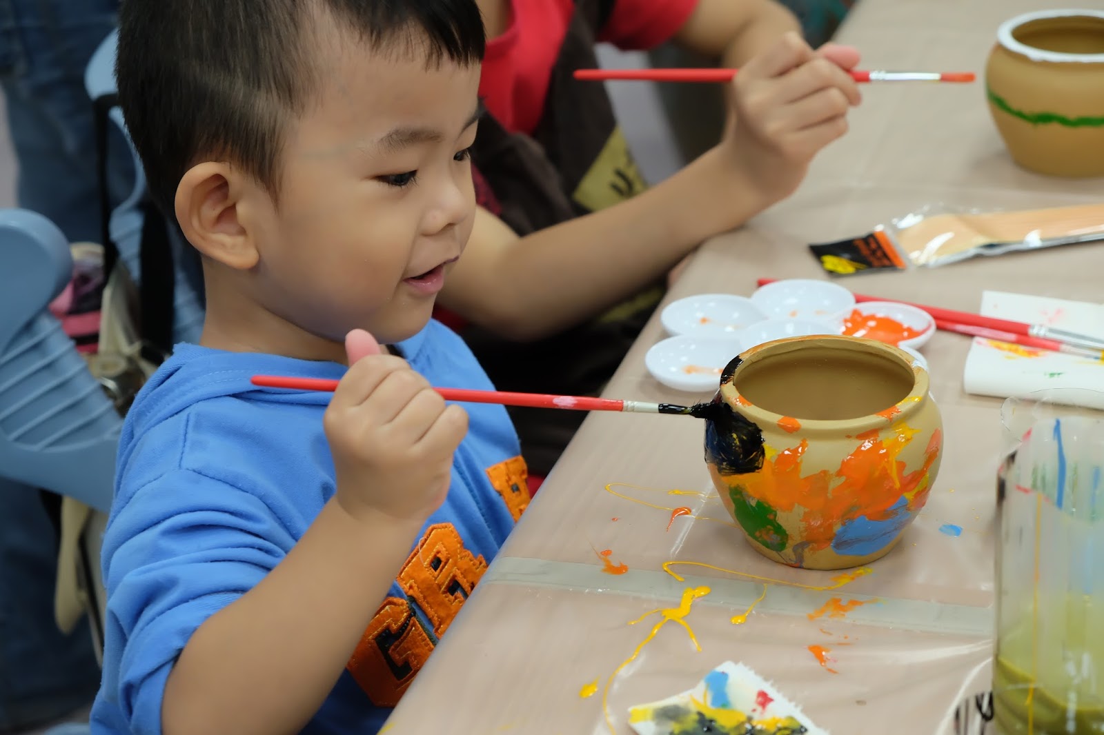 ▲小朋友體驗彩繪陶壺。