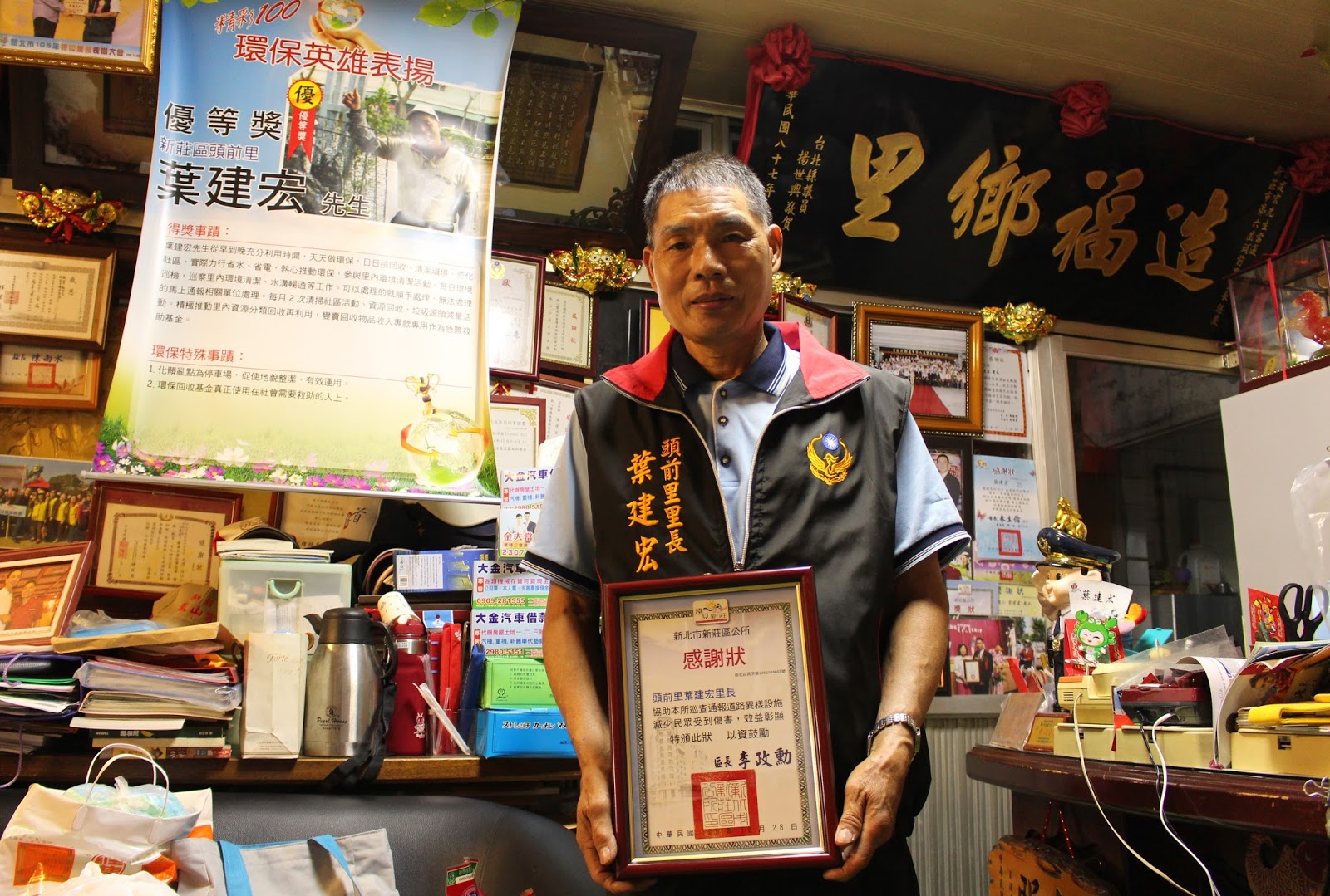 ▲新莊區公所頒感謝狀給頭前里里長葉建宏。