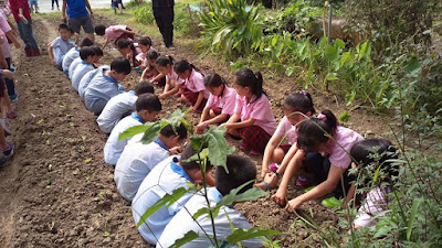 ▲國泰國小水精靈農場,學生種下小樹苗。