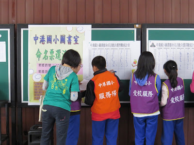 ▲中港國小命名決選,學生幫忙開票、記錄。