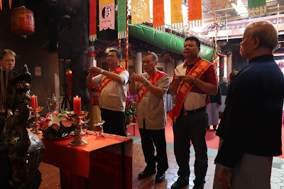 ▲新莊武當鎮北殿代表(左)、新莊鳳山宮代表(中)、新莊忠義館代表(右)到慈祐宮參拜。