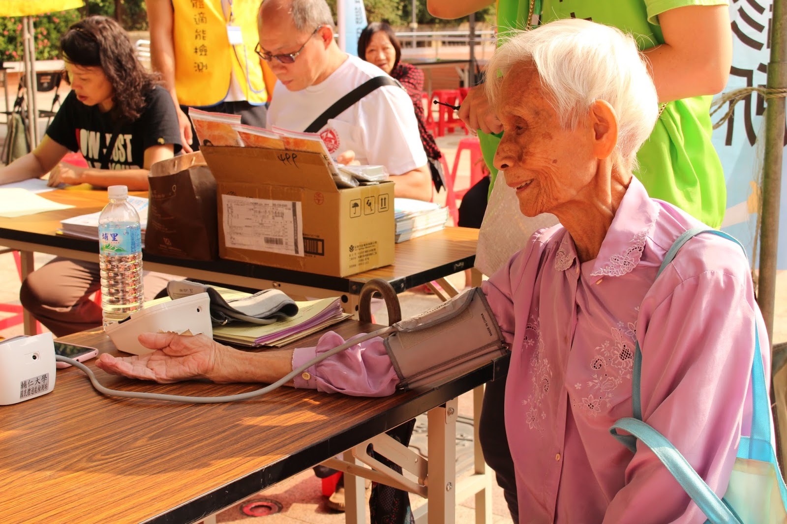 ▲民眾在攤位檢測血壓。