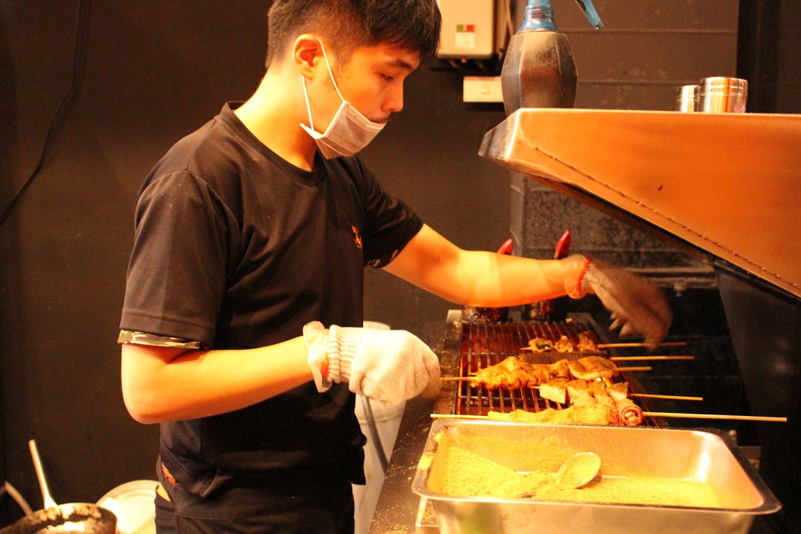 多數串燒店都是「先炸後烤」,謝欣儒堅持店內沒有一桶食用油,全部都是現點現烤。如此雖然會費工耗時,但用烤的比較能入味,口感也比較鮮甜。謝欣儒很得意地說,負責碳烤的師傅都要經過一定訓練,讓部分食物烤的跟炸的一樣有酥脆的口感。